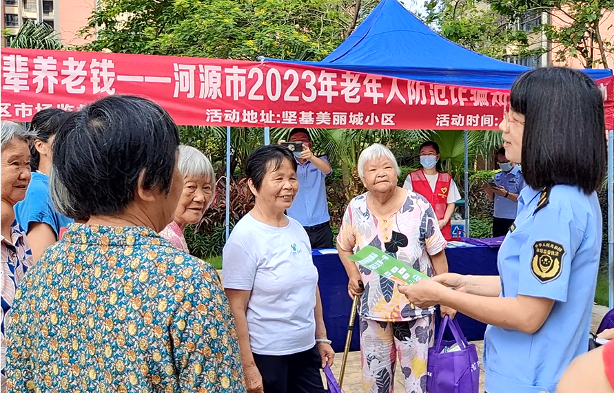 为打击利用保健食品诈骗老年人钱财的不法行为,提升老年群体反诈意识,5月29日,市市场监督管理局联合源城区市场监督管理局在坚基美丽城小区开展以“增强老年人防诈‘免疫力’·用心守护长辈养老钱”为主题的老年人防范诈骗知识宣传活动。